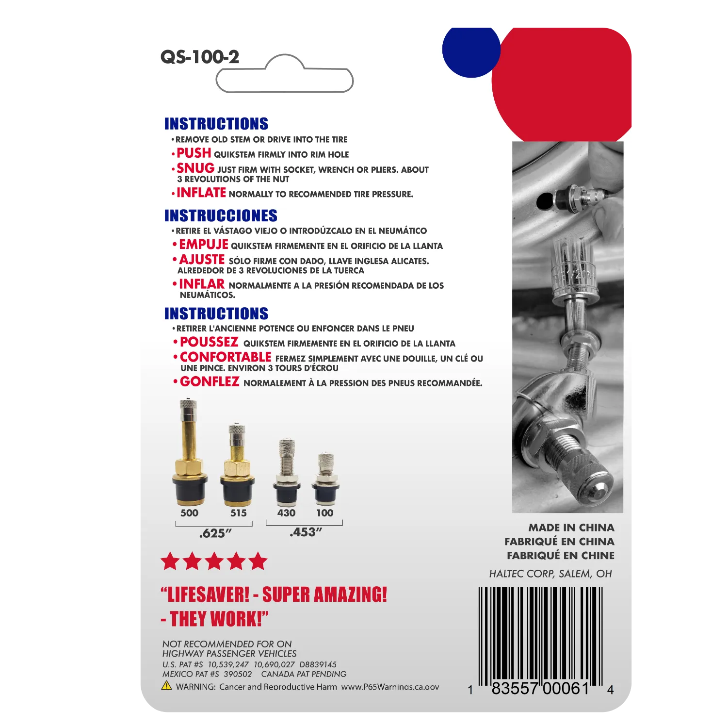 • Replaces broken valve stems on ATVs/UTVs and side by sides (SxS) riding and zero turn mowers, most tow behind implements, offroad 4x4s, Jeeps and Rock Crawlers and most light trailers